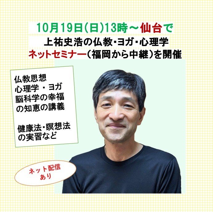 10月19日(日)13時~、仙台・福岡合同で、上祐史浩の仏教・心理学セミナーを行います。